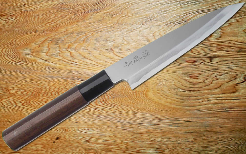 刃渡りが短いので、大きな魚やマグロなどの柵を切るのには適していませんが、小魚をぶつ切りにしたり、貝の身をスライスしたりすることができます。